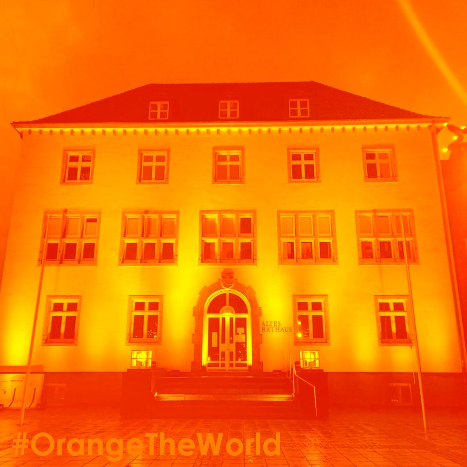 Ganz in Orange wird das Alte Rathaus am Abend des 25. Novembers erstrahlen, Bürgermeister Klaus Krützen wird die Lichtinstallation um 18:00 Uhr mittels eines Schalters einschalten und die Aktion offiziell eröffnen. Dies soll ein Hoffnungszeichen sein. Die Farbe Orange gilt als Sinnbild für Licht und Wärme. Sie steht für eine positive Zukunft und für die Hoffnung auf ein gewaltfreies Leben.