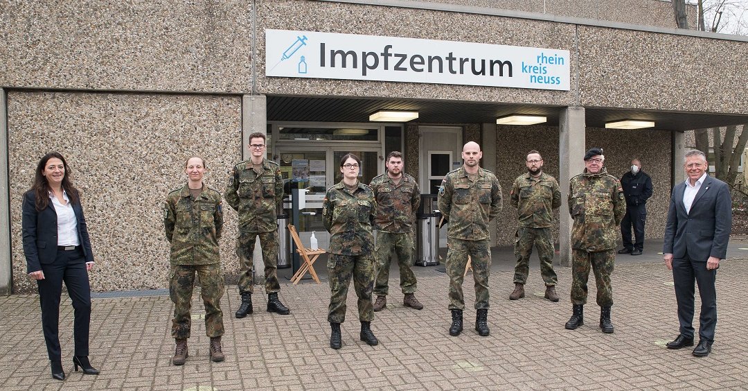 Ein dickes Lob gab es jetzt für die Bundeswehr-Angehörigen, die das Corona-Impfzentrum des Rhein-Kreises Neuss unterstützt haben. Landrat Hans-Jürgen Petrauschke nahm ihre Verabschiedung zum Anlass, um sich herzlich zu bedanken. „Das Bundeswehr-Personal war ein echter Glücksgriff für uns. Die Soldatinnen und Soldaten haben uns in einer sehr schwierigen Phase der Pandemie unterstützt. Sie haben herausragendes Engagement gezeigt und verdienen dafür unseren Respekt“, so Petrauschke.