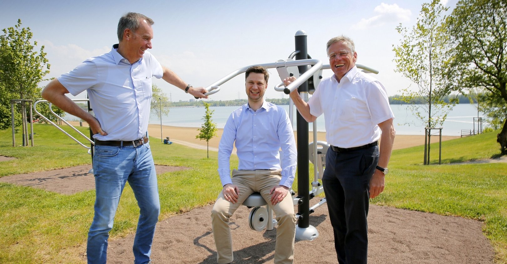 Für die Kreiswerke-Geschäftsführer Stefan Stelten und Martin Stiller, die zusammen mit Landrat Hans-Jürgen Petrauschke mehrere der elf Fitnessgeräte ausprobierten, steht fest: „Der Kaarster See und Strabeach in Dormagen-Nievenheim sind mit ihren vielfältigen Angeboten seit Jahren ein Magnet für Familien aus dem Rhein-Kreis Neuss und aus der Region. Wir freuen uns, dass auch in diesem Jahr die Wasserqualität stimmt.“ So erhalten die beiden Gewässer in Kaarst und Nievenheim auf der Strandkarte des Landesumweltamts beide das Prädikat „ausgezeichnet“. Die Ergebnisse für alle Badeseen in NRW finden sich auf der Homepage www.badegewaesser.nrw.de.