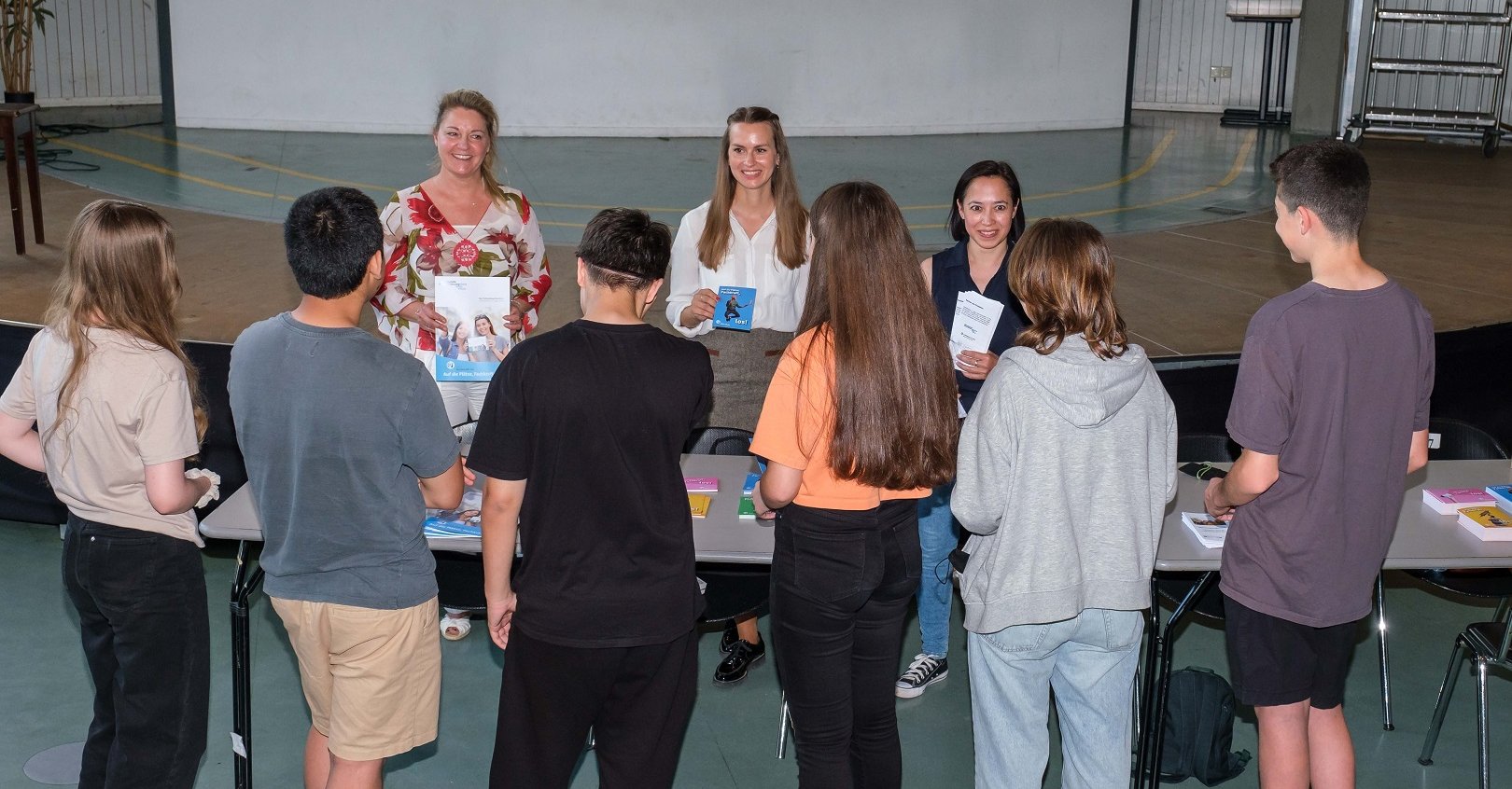 In Grevenbroich mit dabei war auch Dorothée Druhm vom Bildungszentrum Niederrhein, die die Übergangsbegleitung für den Rhein-Kreis Neuss koordiniert. Sie ergänzte das Veranstaltungsprogramm mit einer Vorstellung der Unterstützungsmöglichkeiten im Rahmen des Projekts, bei dem sie Schülerinnen und Schülern im Übergang in eine Ausbildung zur Seite steht. Seit Einführung der Übergangsbegleitung im Oktober 2021 arbeitet Druhm eng mit der Kommunalen KAoA-Koordinierung zusammen, um durch Corona bedingten Nachteilen bei der Besetzung von Lehrstellen entgegenzuwirken.