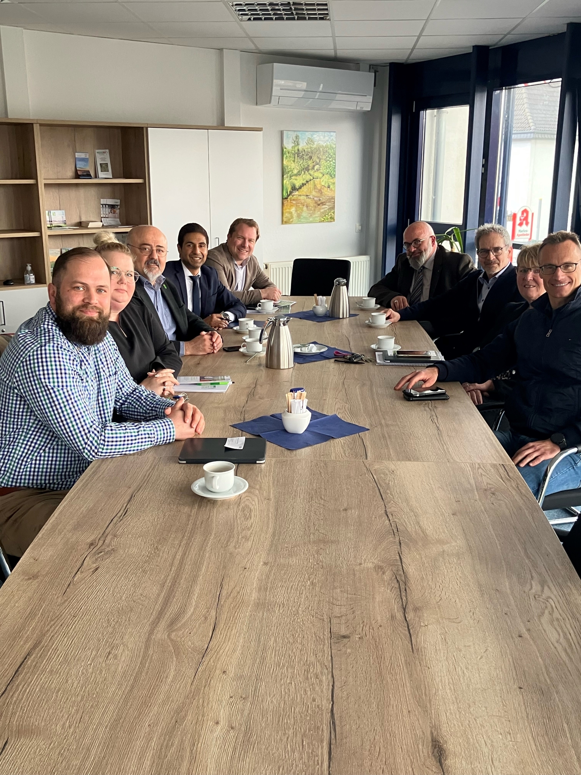Fortgesetzt wurden die Gespräche jetzt im Rathaus. Bürgermeister Dr. Martin Mertens und der Leiter der Kölner BBQ- Niederlassung Thomas Grüßen boten dazu jeweils mehrere wichtige Mitarbeiter auf.