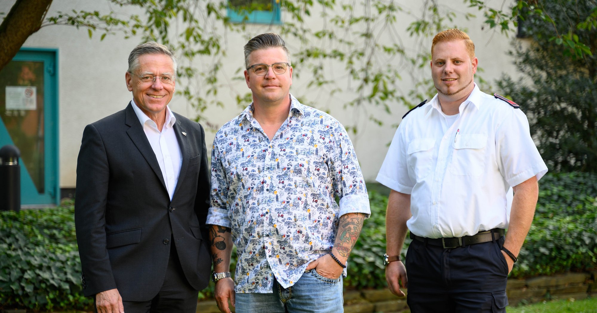 Beherzter Einsatz im äußersten Notfall hat jetzt seine Würdigung im Ständehaus des Rhein-Kreises Neuss in Grevenbroich erfahren: Landrat Hans-Jürgen Petrauschke stellte in einer kleinen Feierstunde Jens Brandofsky und Thorsten Fuhrmann in den Mittelpunkt. Sie hatten beim Schützenfest in Wevelinghoven einem 79 Jahre alten Mann das Leben gerettet. „Das war eine vorbildliche Teamleistung. Sie haben viel Mut, Besonnenheit und Geistesgegenwärtigkeit unter Beweis gestellt, und dafür gebührt ihnen unser aller aufrichtiger Dank“, lobte Petrauschke das Engagement der Retter.