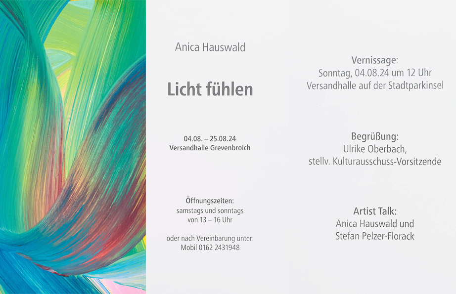 Am Sonntag, 04.08.2024 um 12 Uhr wird eine neue Ausstellung unter dem Titel „Licht fühlen“ in der Versandhalle eröffnet. Die Künstlerin Anica Hauswald, geboren in Düren, studierte an der Kunstakademie Düsseldorf als Meisterschülerin von Professor Herbert Brandl.