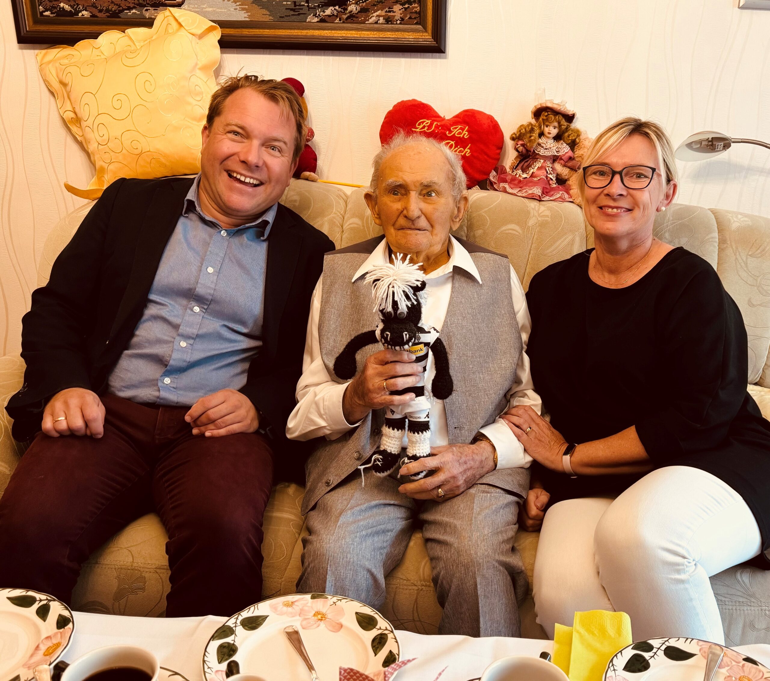 Für die Gemeinde Rommerskirchen gratulierten Bürgermeister Dr. Martin Mertens und seine Stellvertreterin Bianka Mischtal. „Ich bin immer wieder beeindruckt, welch lebensfroher Mensch Heinrich Balzer bin in sein hohes Alter geblieben ist – schon seit einiger Zeit ist er übrigens der älteste Mann in der gesamten Gemeinde“, so der Bürgermeister. Angesichts seines Lebenswegs alles andere als eine Selbstverständlichkeit, kehrte der gebürtige Eckumer nach dem Zweiten Weltkrieg doch erst im Oktober 1949 aus russischer Kriegsgefangenschaft in seinen Heimatort zurück. Dort lebte er stets am Steinbrink, wo er das elterliche Haus nach der Heirat mit seiner 2019 verstorbenen Frau grundlegend umbaute.