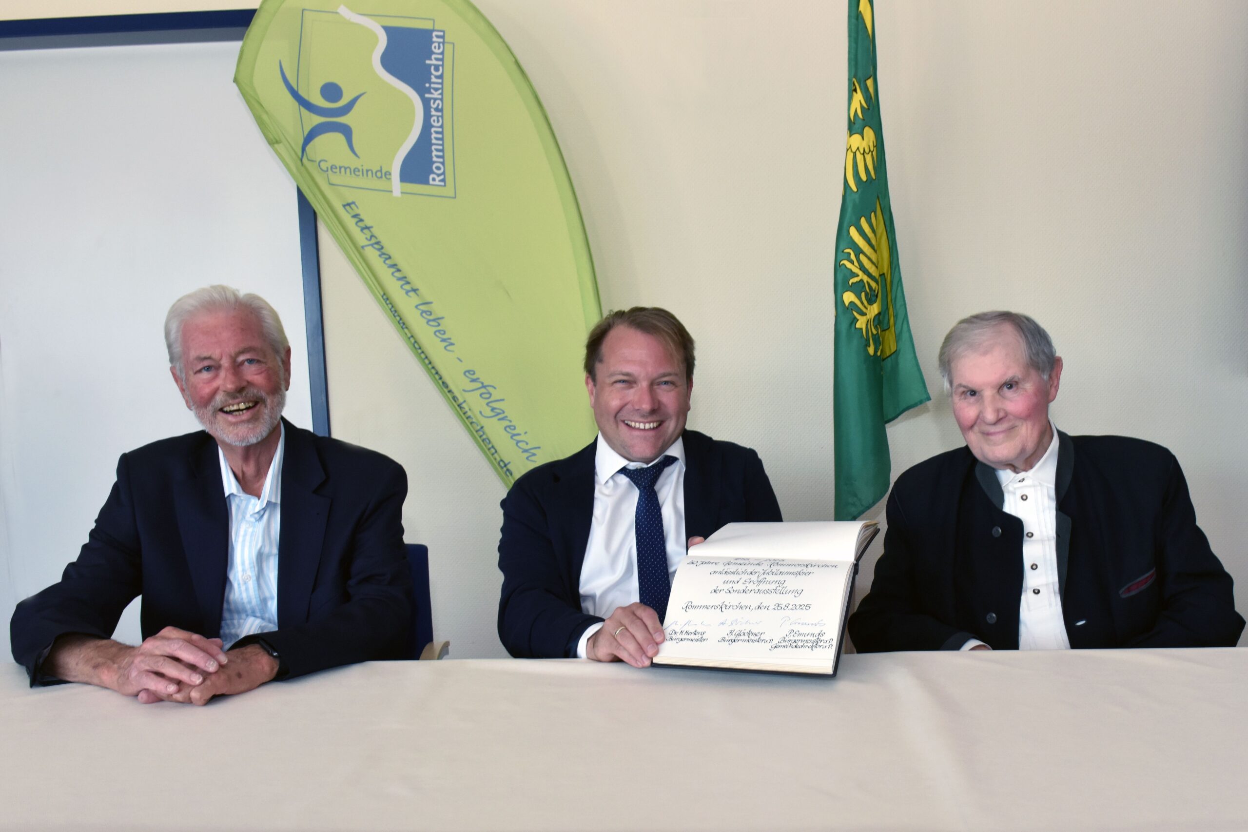 Ihres 50. „Geburtstags“ gedachte die Gemeinde jetzt mit einer Feierstunde, bei der mit den früheren Bürgermeistern Peter Emunds und Albert Glöckner – moderiert von zwei Zeitzeugen auf diese politisch lebhaften Zeiten und die seitherige Entwicklung Rommerskirchens zurückblickten.  Zugleich wurde mit der Veranstaltung eine Bilderausstellung „50 Jahre Rommerskirchen“  eröffnet, die 21 markante Motive aus dem Gemeindegebiet zeigt.