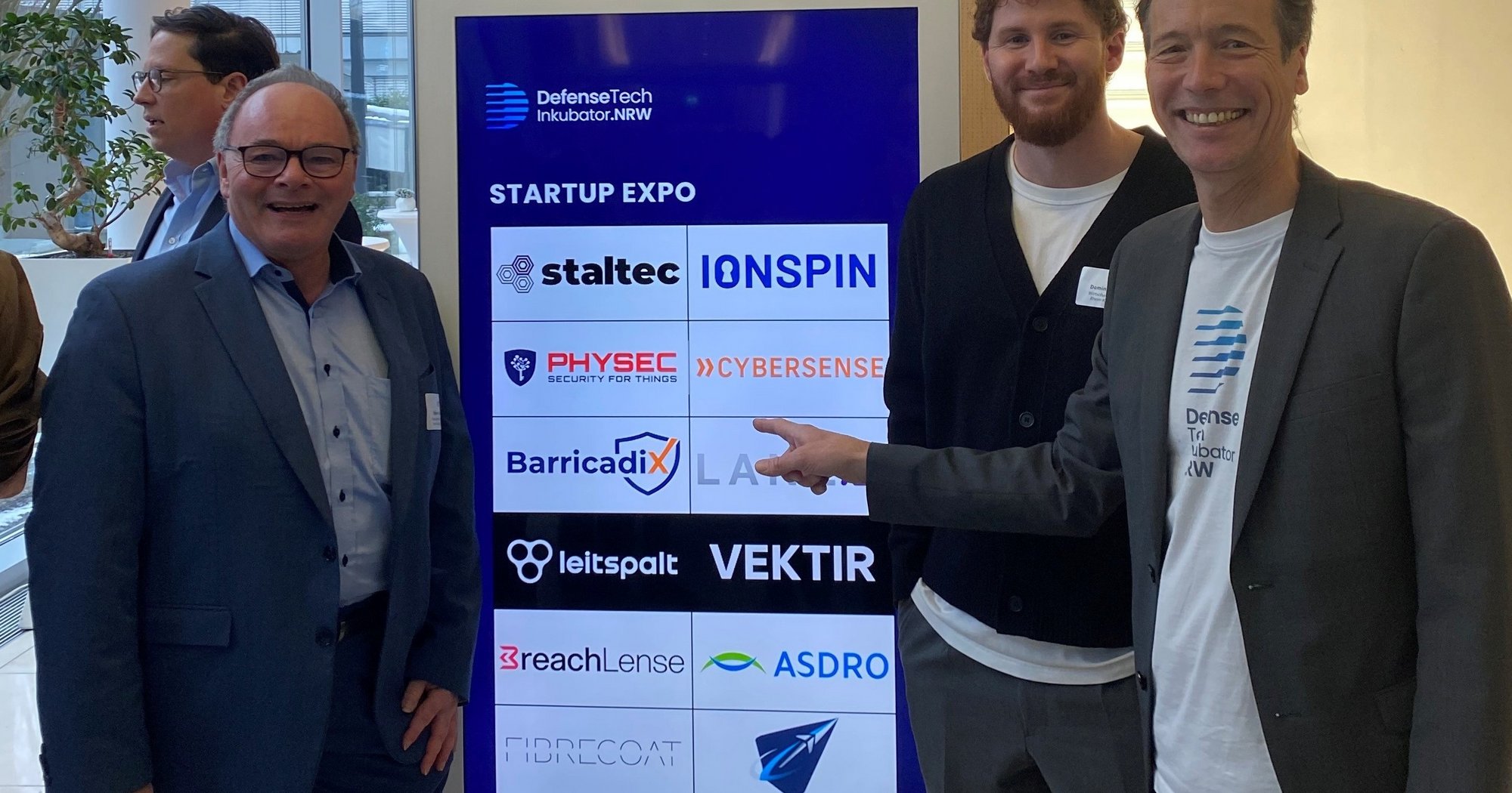 Mit den Start-ups Staltec und Vektir waren zwei Start-ups aus dem Rhein-Kreis Neuss unter den Ausstellern vertreten. Das Meerbuscher Start-up Vektir entwickelt Lösungen für die Drohnenidentifikation und ist Bestandteil des Start-up-Ökosystems des Kreises. Staltec entwickelt technische Beschichtungen für Produktionsanlagen der Stahlindustrie und hat seinen Sitz im Impuls-Werk des Rhein-Kreises Neuss. Zuletzt setzte sich Staltec im Final Pitch der achten Runde von „accelerate.RKN“ durch. Dabei handelt es sich um das Accelerator-Programm des Rhein-Kreises Neuss. Mit dem Förderprogramm unterstützt der Rhein-Kreis Neuss Gründerinnen und Gründer bei der Entwicklung ihrer Start-ups und begleitet sie auf dem Weg von der Idee zum marktfähigen Produkt. Ziel von „accelerate.rkn“ ist es, den Wirtschaftsstandort weiter zu stärken. Weitere Informationen hierzu gibt es unter https://www.rhein-kreis-neuss.de/accelerate-rkn.