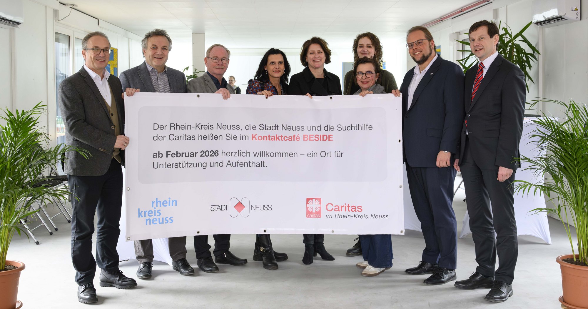 In rund einer Woche wird das Kontakt-Café „Beside“ an der Rheintorstraße 30 eröffnet. Ab 18. Februar bieten die Caritas Sozialdienste Rhein-Kreis Neuss dort niedrigeschwellige Hilfen für Menschen, die Drogen und andere Substanzen konsumieren und abhängig von Suchtmitteln sind, an. Betroffene finden dort beispielsweise Wasch- und Duschmöglichkeiten vor. Zudem haben sie dort die Möglichkeit, Beratungsangebote wahrzunehmen oder eine Mahlzeit zu sich zu nehmen. Die neuen Räumlichkeiten und das Konzept wurden jetzt vom Rhein-Kreis Neuss, der Stadt Neuss und den Caritas Sozialdiensten bei einem Mediengespräch vorgestellt. Zu diesem Termin waren auch alle Bürgermeister aus dem Rhein-Kreis Neuss eingeladen, um sich ebenfalls ein Bild vor Ort machen zu können.